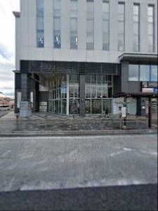 地下駐車場への入口は駅ロータリー側ではなく、駅前の道路(銀座通り)側に面しています。駐車は無料で、駅前広場の駐車場の方が長いようですが、地下駐車場はエレベーターが使えて、そのまま建物内に入れますので、悪天候時はこちらの方が良いと思います。